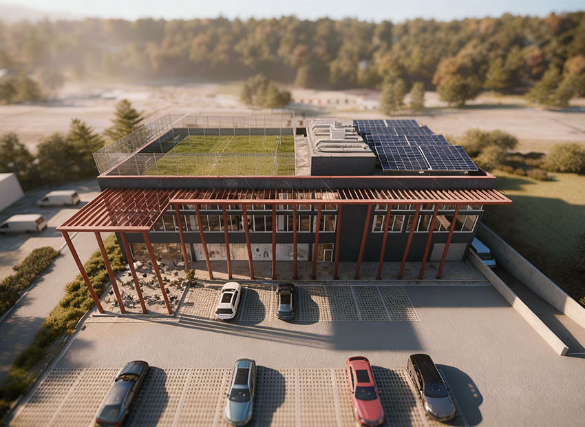 Il concetto fondante del progetto è la sostenibilità ambientale. Ogni scelta progettuale e costruttiva è stata orientata con lo scopo di ridurre al minimo la domanda energetica e l’impatto che la struttura avrà sull’area circostante. L’edificio si sviluppa su tre piani e si distingue per ottime finiture e standard esecutivi di alto livello, applicati per assicurare alti livelli di funzionalità, sicurezza e affidabilità nel tempo.